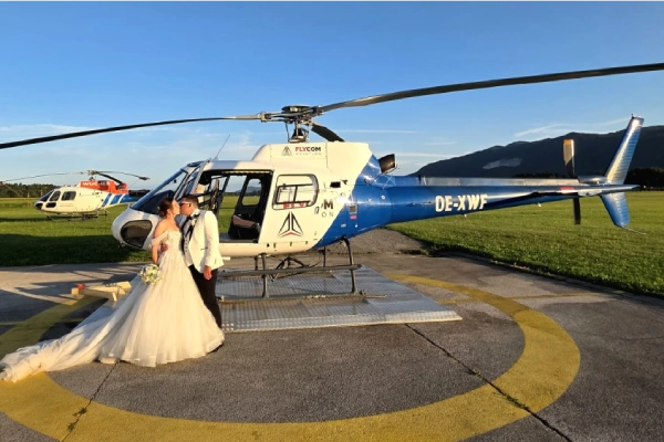 Naj bo vaš poročni dan resnično nepozaben – z helikopterskim prevozom Flycom Aviation, ki združuje eleganco, razkošje in spektakularen prihod. Za pare, ki si želijo nekaj več, ponujamo edinstveno izkušnjo, ki bo očarala tako mladoporočenca kot goste.